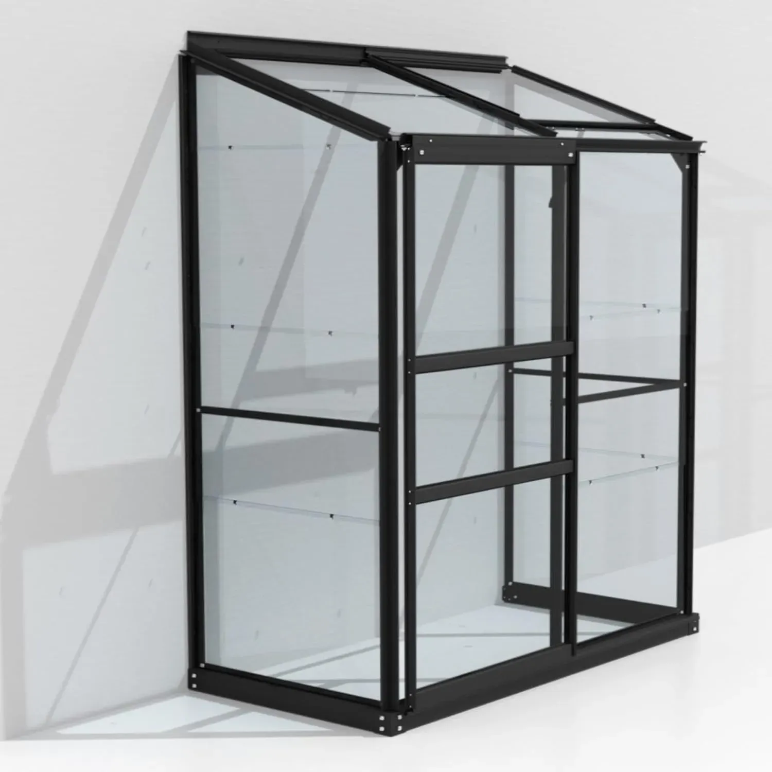 Schwarzes Anlehn-Gewächshaus Styx 900, 0,9 m², wetterfestes ESG 3 mm Glas, ideal für Gemüse- und Kräuteranbau