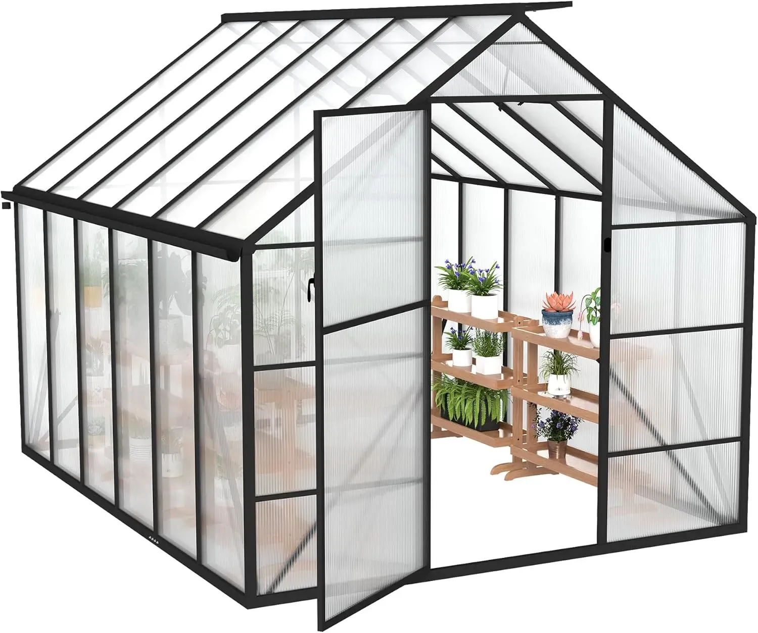Hochwertiges Aluminium Gewächshaus 310x250x205cm mit stabilem Fundament, Dachfenster und Tür, Wetter- und Temperaturbeständig für Gemüse & Pflanzen