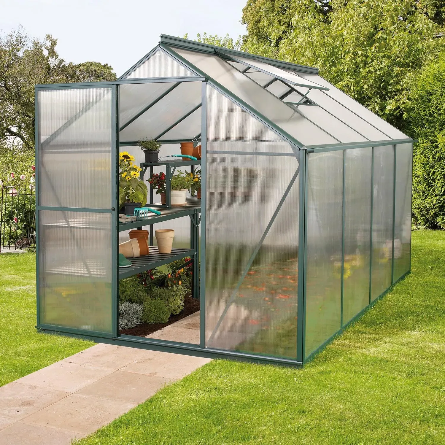 Vitavia Triton 5000 Gewächshaus mit Stahlfundament, Smaragdgrün, 5,0 m², 6 mm Hohlkammerplatten | Wetterbeständig & stabil | Ideal für Gemüse und Pflanzen | Robust & langlebig