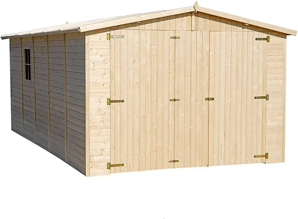 TIMBELA M101 Holzgarage – Geräumiger Gartenschuppen mit Fenstern, H222x516x324 cm, 15 m², Naturholz