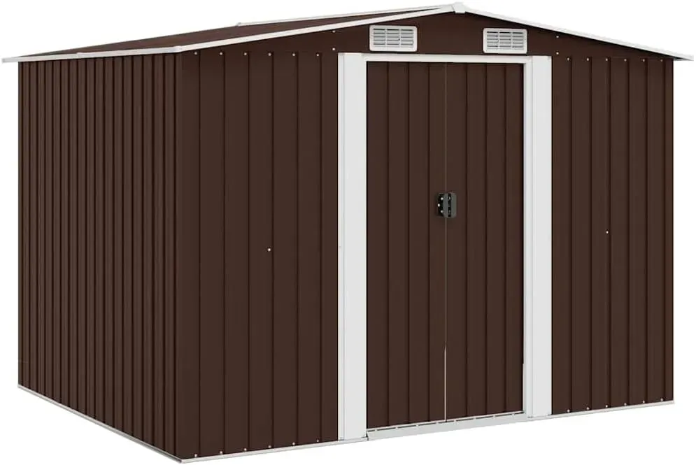 Garten-Geräteschuppen aus Stahl mit Lüftungsöffnungen, braun, 257x205x178 cm