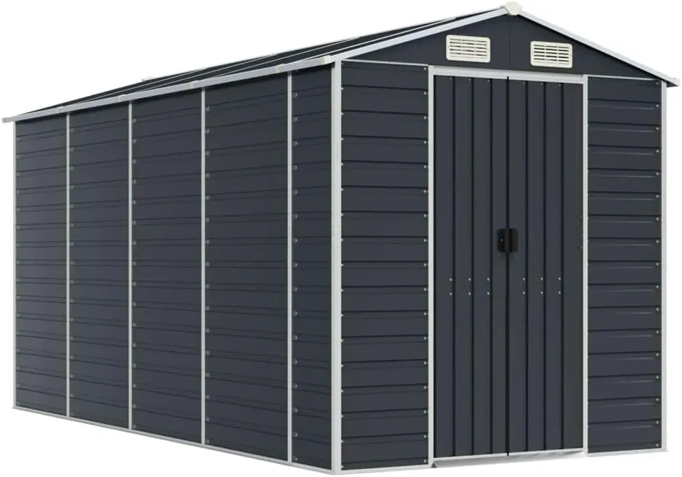 Metallgerätehaus anthrazit 191x385x198 cm aus verzinktem Stahl