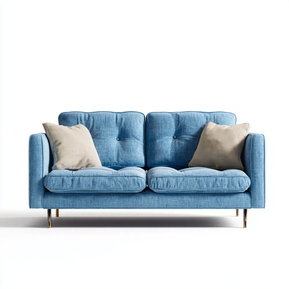 Material und VerarbeitungDas Sofa besteht aus strapazierfähigem, blauem Stoff, der weich und pflegeleicht ist.