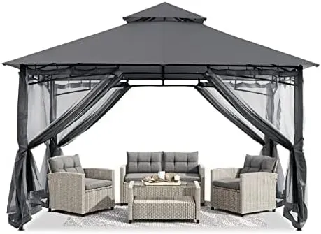 Unser Pavillonrahmen besteht aus Edelstahl mit Pulverbeschichtung für Rostbeständigkeit und zusätzliche Haltbarkeit. Der Durchmesser jedes Beins beträgt etwa 50 mm und bietet starken Halt. Die Überdachung besteht aus 180 g/m² Rip-Lock-Gewebe mit PU-Beschichtung, das Reißen verhindert und Sonnenschutz bietet. Das Design fördert die Wasserdichtigkeit durch Verhinderung von Wasseransammlungen und Entwässerungslöcher helfen beim Ablaufen. Dieser Terrassenpavillon bietet eine Abdeckung von 10,0 m², ausreichend für 6-8 Personen. Das Netzgewebe mit Reißverschluss schützt vor Sonnenlicht und ermöglicht gute Belüftung und Sicht. Ein Haken oben ermöglicht das Aufhängen von Beleuchtung oder Ventilator. Geeignet für Garten, Terrasse oder Pool, ideal für Versammlungen, Partys oder Hochzeiten.