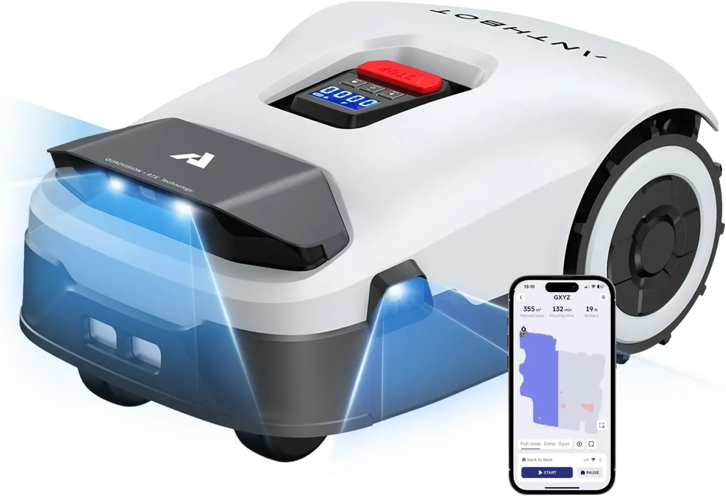 Navigation mit RTK & 4-Kamera-Vision: Der ANTHBOT Genie 600 Mähroboter verwendet Vollfrequenz-RTK-Technologie kombiniert mit einem 4-Kamera-3D-Visionsystem. Er erreicht eine Genauigkeit von bis zu 5 cm und erkennt Hindernisse, Möbel und Bäume zuverlässig, geeignet für komplexe Gärten. Einfache Installation & Kartenerstellung: Dank automatischer und ferngesteuerter Kartenerstellung kann der ANTHBOT Genie 600 Rasenroboter Karten anlegen und per Fernsteuerung gesteuert werden. Das System ist leicht verständlich und einsatzbereit. KI-gestützte Hindernisvermeidung: Mit Objekterkennung, Rundumsicht und Kollisionssensoren meistert der Roboter enge Passagen, Blumenbeete und Spielzeug. Algorithmen sorgen für sicheres Mähen. Leistungsstarkes Mähsystem: Der Roboter ist mit einem 5-fach Edelstahlmesser ausgestattet, hat eine Schnittbreite von 20 cm und eine flexibel einstellbare Höhe von 3–7 cm. Er schneidet auch Rasenkanten und schwer zugängliche Bereiche und bewältigt Steigungen von bis zu 45 %. Smartes App-Management: Über die mobile App können Arbeitszonen und No-Go-Bereiche festgelegt werden. Der Roboter unterstützt GPS-Tracking, Fernsteuerung und Zeitpläne. Automatisches Aufladen & Wetterschutz: Bei niedrigem Akkustand oder Regen kehrt der Roboter automatisch zur Ladestation zurück. Mit Schnellladefunktion, Akku-Schutz und Regensensor garantiert der Roboter mit GPS einen zuverlässigen Betrieb.