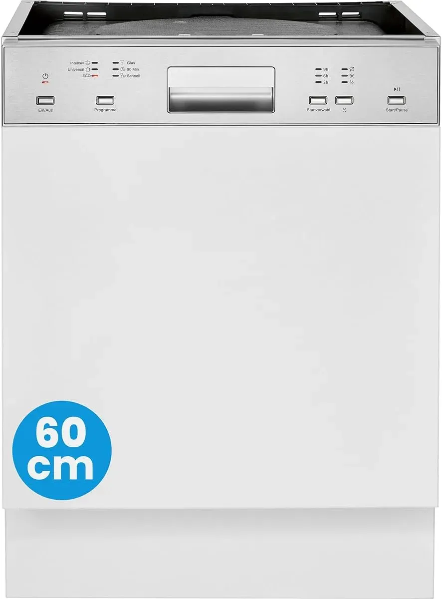 Geschirrspüler 60 cm teilintegriert mit automatischer Türöffnungsfunktion nach Programmende. Diese Spülmaschine bietet Reinigungstemperaturen von 40°C bis 65°C und 6 Programme. Mit einem Betriebsgeräusch von 49 dB arbeitet der Geschirrspüler leise. Er beinhaltet einen Aquastop-Schlauch und bietet eine Programm-Startvorwahl von 3, 6 oder 9 Stunden.