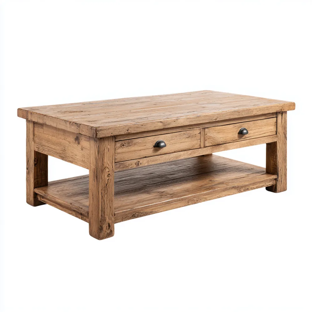 Funktionale HighlightsDer Couchtisch verfügt über zwei Schubladen und eine untere Ablagefläche, ideal für die Aufbewahrung von Zeitschriften, Fernbedienungen oder anderen Gegenständen.