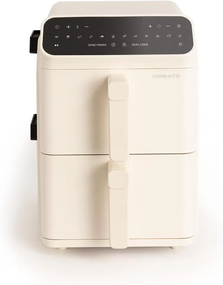 Genießen Sie Speisen dank des Heißluftsystems. Die herausnehmbaren und spülmaschinenfesten Roste erleichtern die Reinigung. Mit zwei separaten Körben à 5,6 l bietet das Gerät eine Gesamtkapazität von 11,2 l, sodass Sie zwei Gerichte gleichzeitig zubereiten können. Das digitale Bedienfeld ermöglicht einfache Temperatureinstellungen bis 200 °C und eine Timer-Funktion von 1 bis 60 Minuten. Wählen Sie aus 10 vorinstallierten Programmen, um verschiedene Speisen wie Pommes frites, Steaks oder Hähnchen zuzubereiten.
