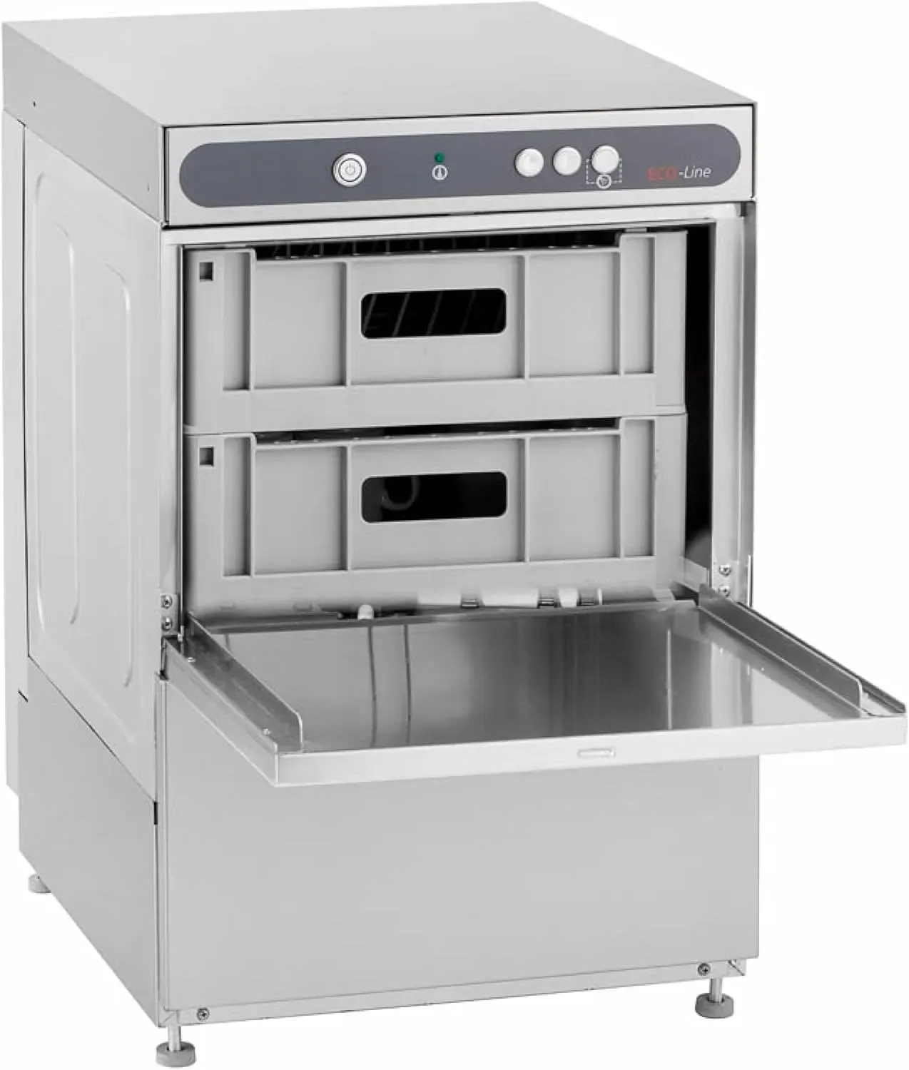 Gläserspülmaschine für Gastronomie – Effiziente Spülmaschine mit Spülzyklen von 1,5 bis 3 Minuten für bis zu 30 Körbe pro Stunde. Geeignet für Bars, Restaurants und Events. Direkter Bodenablauf erforderlich – Diese Gläserspülmaschine benötigt einen direkten Bodenablauf. Auch Modelle mit Laugenpumpe verfügbar, passend für verschiedene Standorte. Energiesparend und hygienisch – Spültemperaturen bis 60°C und Nachspülen bis 85°C sorgen für Reinigung nach HACCP-Standards. Gefertigt aus Edelstahl AISI 304 mit isolierter doppelwandiger Tür und abgerundetem Spülraum für leisen Betrieb. Reinigen ist einfach dank glasfaserverstärkter Waschdüsen. Inklusive Reiniger- und Klarspüldosierer, Universalkorb, Geschirrkorb und Besteckköcher. Leicht zu bedienen für Anforderungen in der Gastronomie.