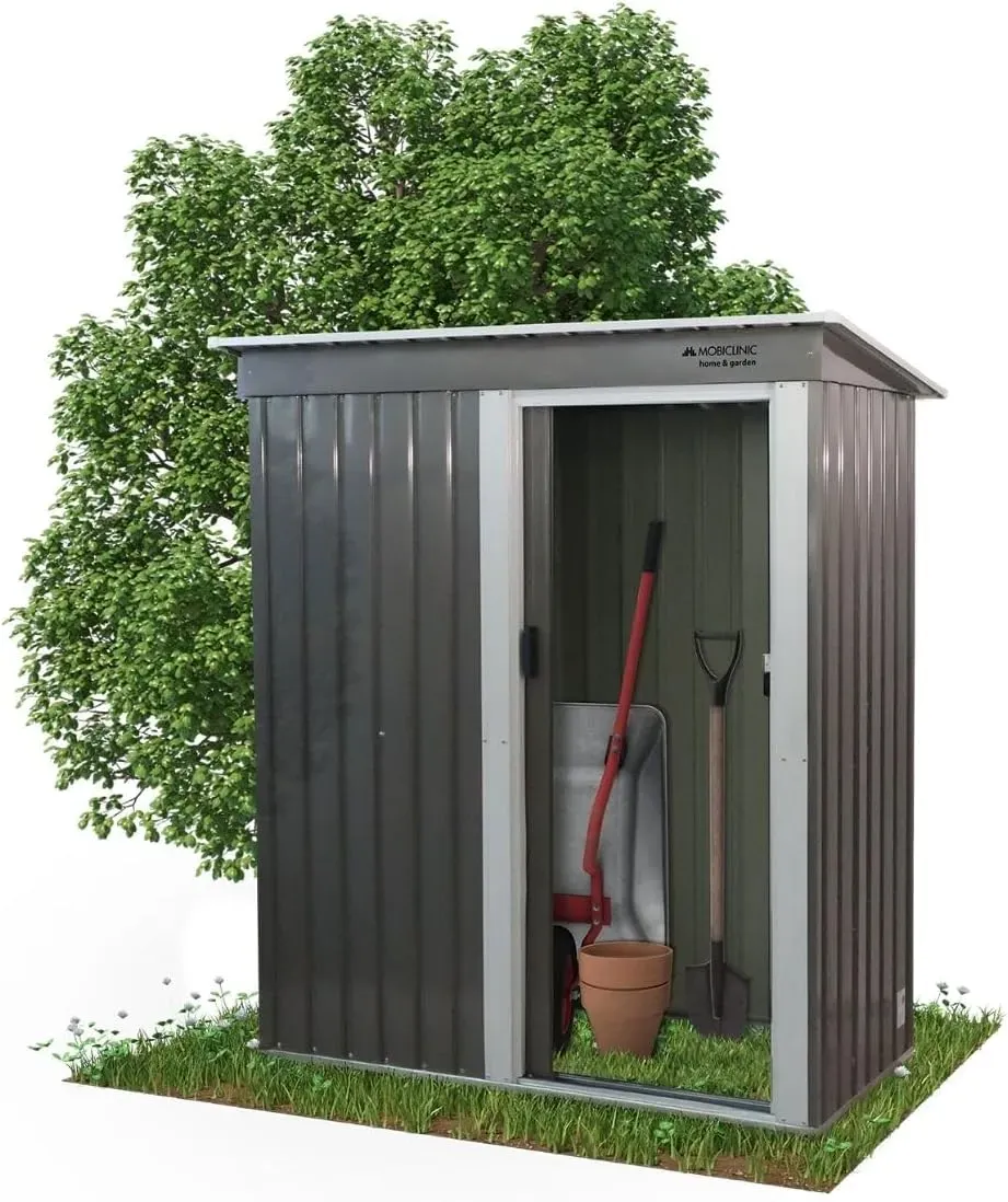 Dieser Geräteschuppen bietet einen schützenden Platz für Werkzeuge, Möbel und andere Gegenstände. Die Konstruktion schützt den Innenraum vor Schmutz, Feuchtigkeit und Witterungseinflüssen. Die Gartenhütte ist für den Außenbereich konzipiert und bietet eine stabile Struktur, auch bei Wind und Regen. Mit den Maßen 162 x 86 x 181 cm passt sie in jeden Garten, da sie Platz für die Organisation bietet und wenig Platz benötigt. Das schrägende Dach des Gartenschranks ermöglicht das leichte Abfließen von Regenwasser, was mögliche Lecks oder Stagnation verhindert. Dies verlängert die Lebensdauer der gelagerten Gegenstände. Der Schuppen hat dank der Schiebetür und fehlendem Boden einen breiten Zugang und bietet Flexibilität bei der Aufstellung. Für Sicherheit ist ein Vorhängeschloss integriert.