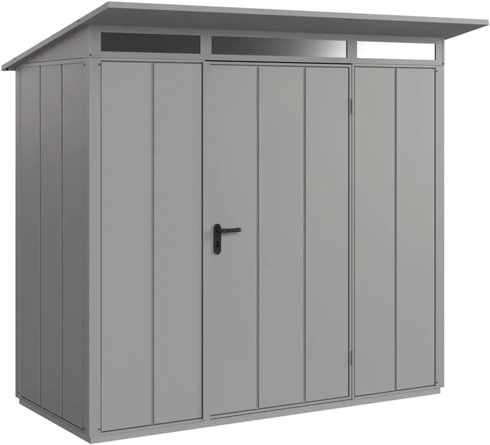 Pulverbeschichtung ohne scharfe Kanten für Sicherheit und Stabilität durch Stahlrahmenkonstruktion. Türdämpfer mit Gasdruckfeder, Profilzylinder und Alubodenrahmen sind enthalten. Hoher Vorfertigungsgrad ermöglicht einfache Montage. Kaum sichtbare Schrauben und Nieten für harmonische Außenansicht. Blechstärken: Trend 0,5 mm, Elegant 0,65 mm, Rahmenteile 1,5 mm Blechstärke.