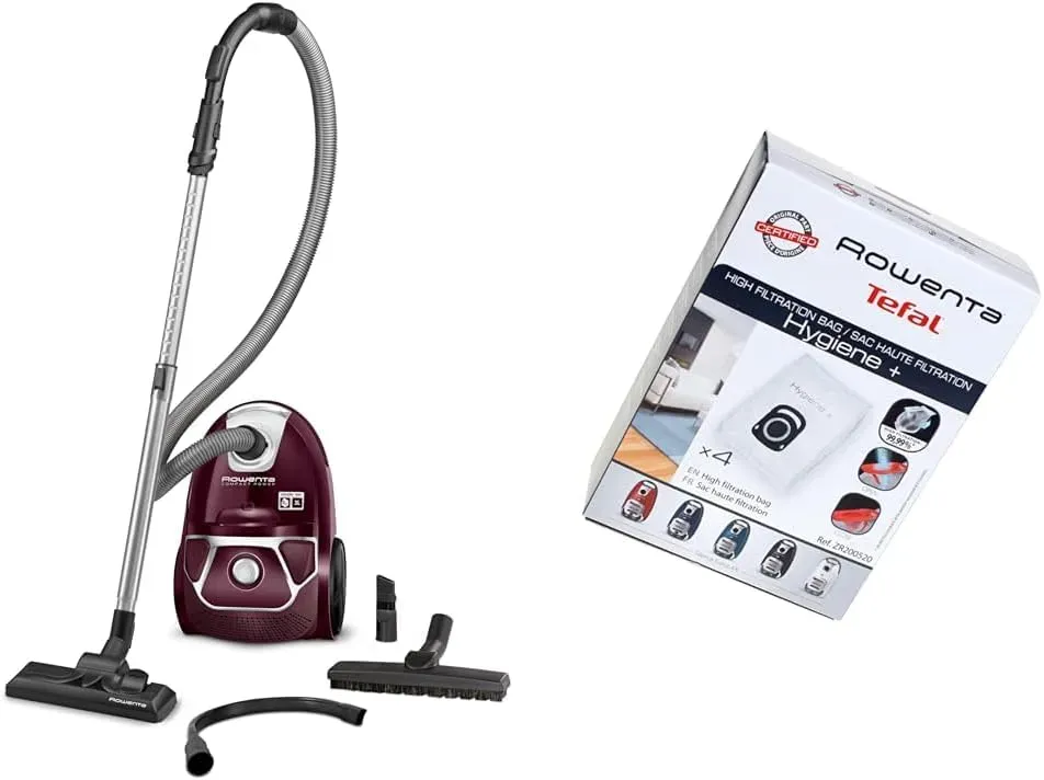Produkt 1: Effiziente Saugleistung auf verschiedenen Bodenarten; kompakt für einfache Aufbewahrung Produkt 1: Energieeffizienter Motor mit 750 Watt Leistung Produkt 1: Staubemission unter 0,02%; ausgestattet mit permanentem Filter Produkt 1: Ergonomischer Griff mit integrierter Möbelbürste Produkt 2: Staubsaugerbeutel mit HEPA-Filter Produkt 2: Filtert 99,9% des aufgenommenen Staubs Produkt 2: Einfacher Wechsel des Staubbeutels durch automatisches Verschlusssystem Produkt 2: Kompatibel mit allen Silence Force 4A Modellen (RO 64xx)